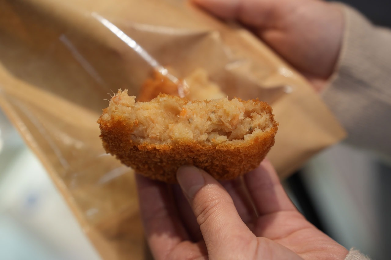 その名の通り、中身の具材にキングサーモンのフレークをたっぷり使ったコロッケなんです!ぎっしり詰まったじゃがいもとも好相性。