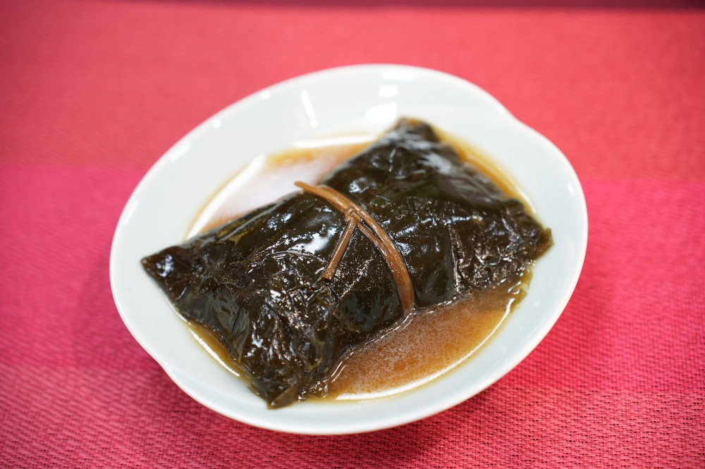 こちらは、コロッケと並ぶ人気商品の鮭の昆布巻です。鮭の中骨を昆布で巻き、醤油・だし汁などでじっくりと煮込んだ新潟の郷土料理で、とくにお正月の時期に欠かせないひと品です。この昆布巻きに使われているのも、こだわりのキングサーモン。キングサーモンコロッケと鮭の昆布巻は加島屋本店の中でも特に人気のため、早々に売り切れてしまうことも。