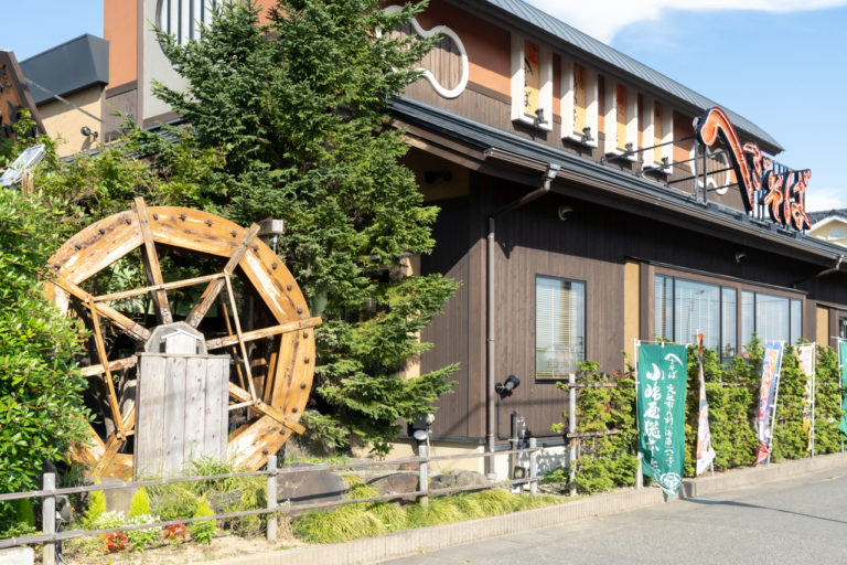 直営店は県内に7店舗あり、中でも亀田インター店は新潟駅から車で10分、新潟中央ICからも近くアクセス抜群。大きな水車が目印です。