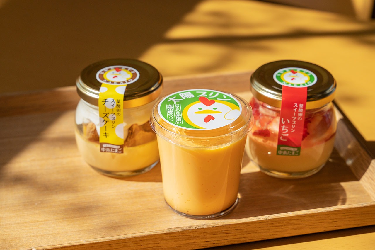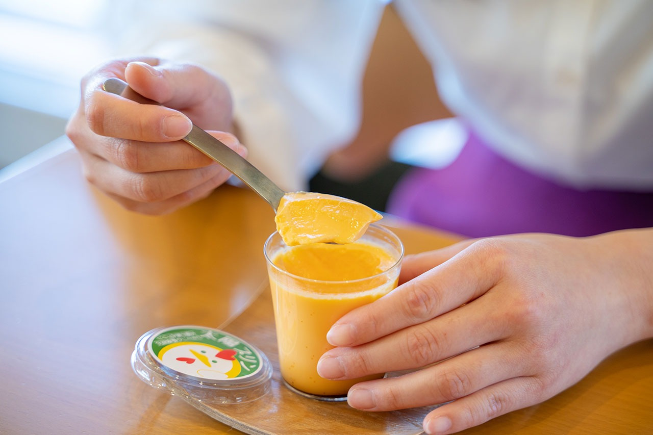 一番人気は鮮やかなオレンジ色のプリン。太陽のプリン(220円)は、本来の新鮮な卵の味を味わってほしいと無添加、卵と砂糖、牛乳のみで作られていて素材の旨味を存分に楽しめる一品です。旬の果物のジュレと合わせたSweetsプリン(コラーゲン入り / 380円)もおすすめ。購入したスイーツは併設するカフェでもいただけます。