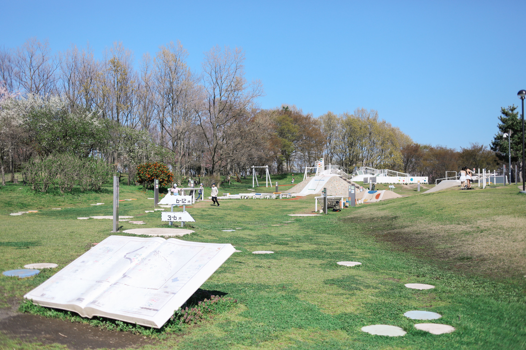 公園内にはテーブルやベンチが置かれた芝生広場があるので、ピクニックのお供にも最適です。