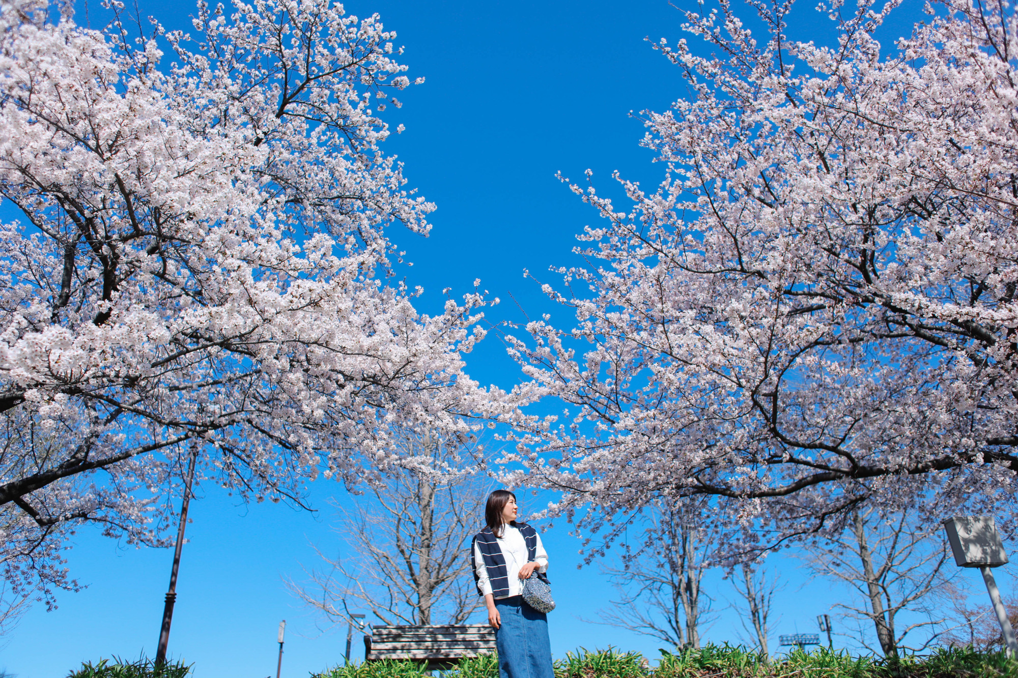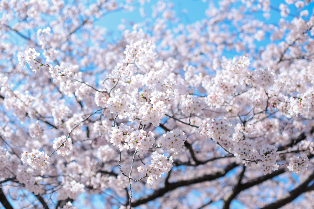 園内で見られる桜はソメイヨシノやカンヒザクラ、ウコンなど15種類。種類によって開花時期が異なるので、例年4月上旬から5月上旬まで見られるのが特徴です。