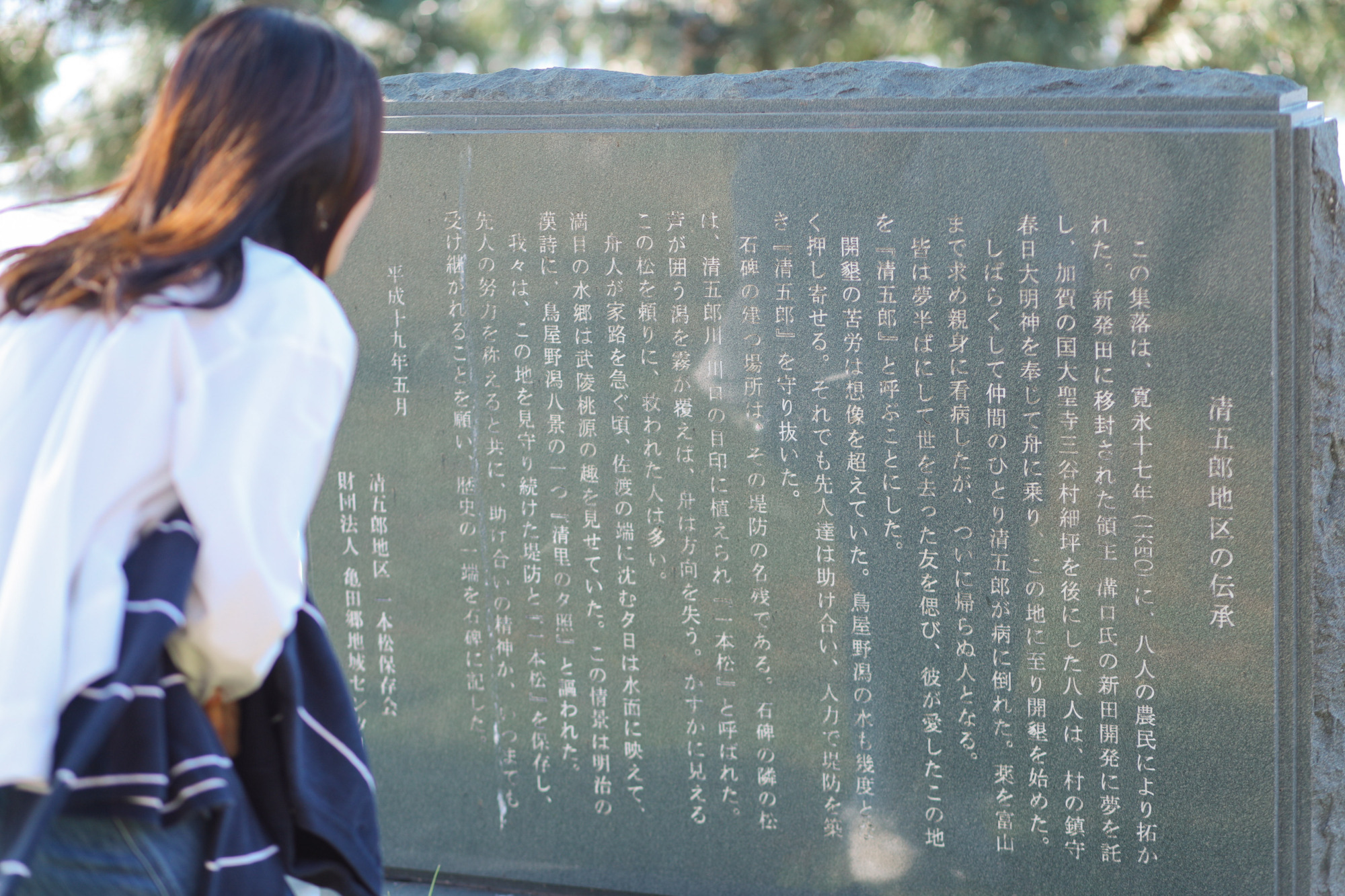寛永17年、この土地は移住してきた8人の農民によって拓されました。しばらくして仲間の1人清五郎が病で他界。夢半ばにして亡くなった友を偲び、この地区を「清五郎」と呼んだそう。清五郎川の川口の目印に植えられた一本松は、今でも残されています。近くに立ち寄った際は、先人の努力と開墾の歴史に思いを馳せてみてはいかがでしょうか?
