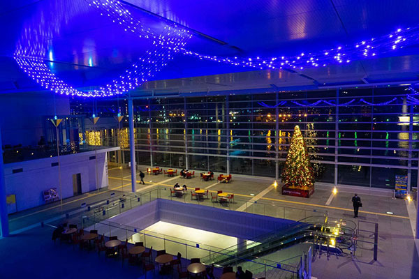 約2万球のLED電球を使った光のカーテンや高さ約7mのクリスマスツリーの展示、モーションプロジェクターなど見どころ満載!屋内で夜景とともにイルミネーションを楽しめます。