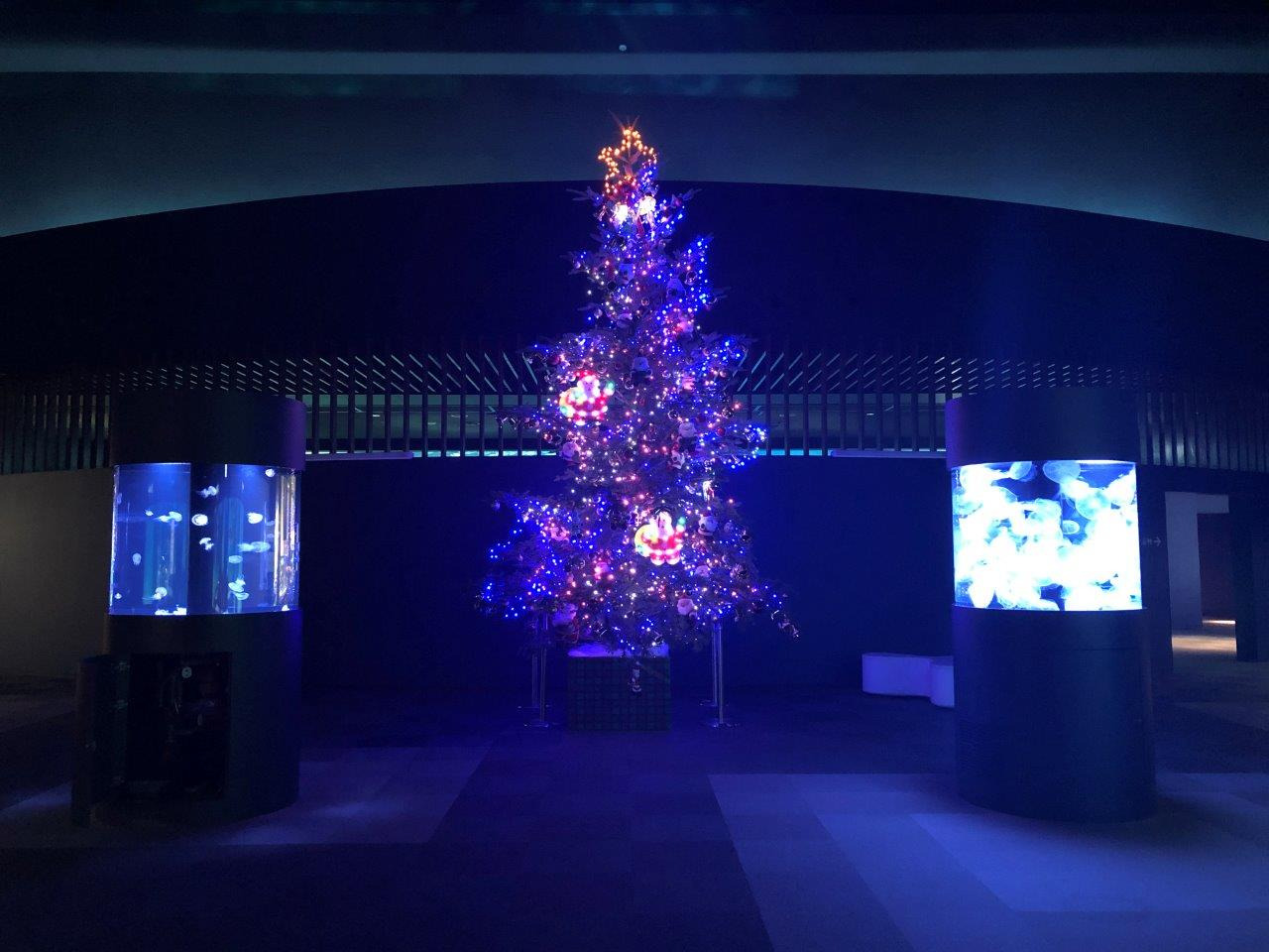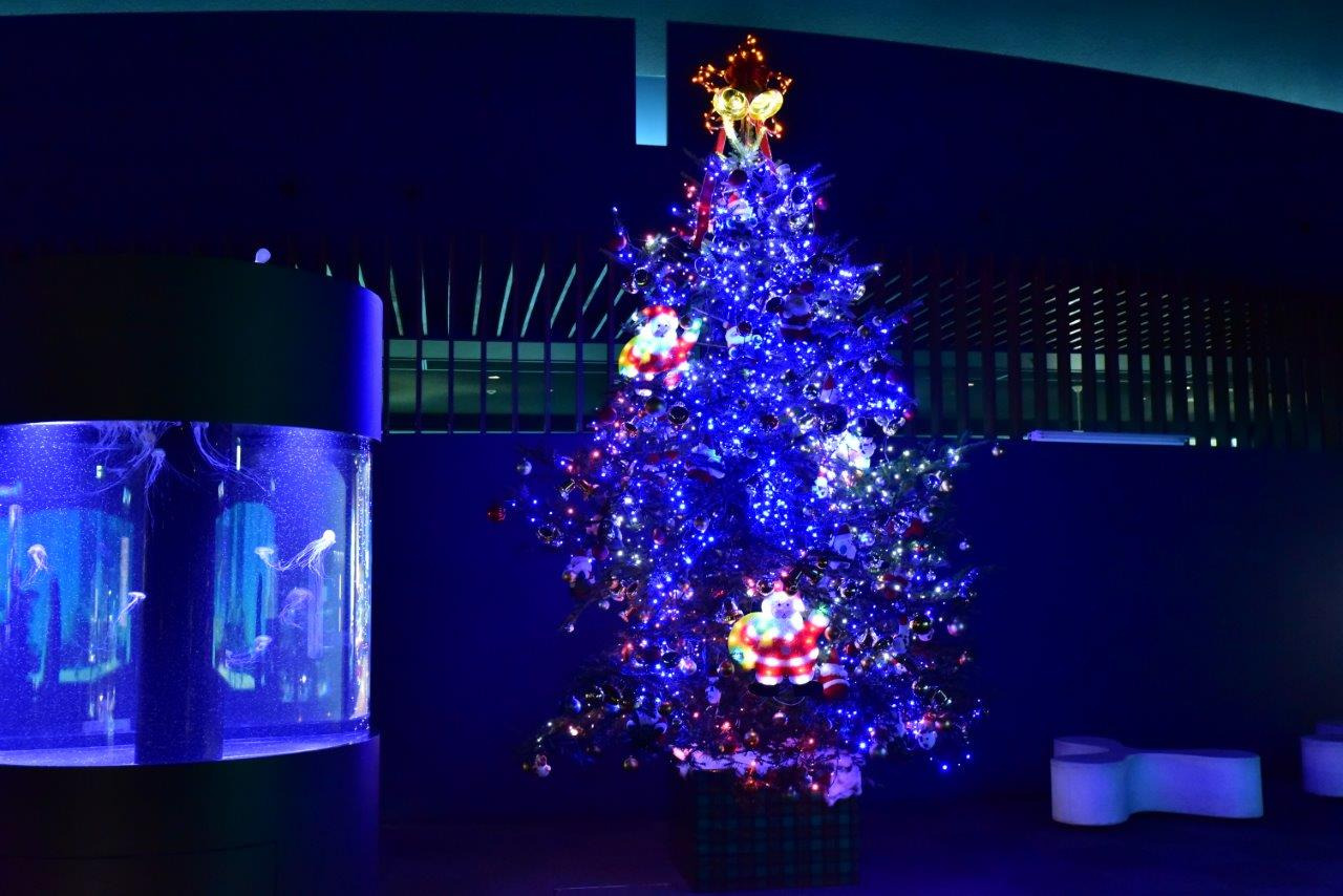 約600種2万点の水生生物に出会える日本海側有数の水族館「新潟市水族館マリンピア日本海」では、今年も本館地下1階マリンピアホールに、高さ約4メートルの天然モミの木を使用したクリスマスツリーを展示します。約2,000球のLEDとクラゲを展示する3本の円柱水槽が放つ淡い光の中、幻想的な雰囲気をお楽しみいただけます。