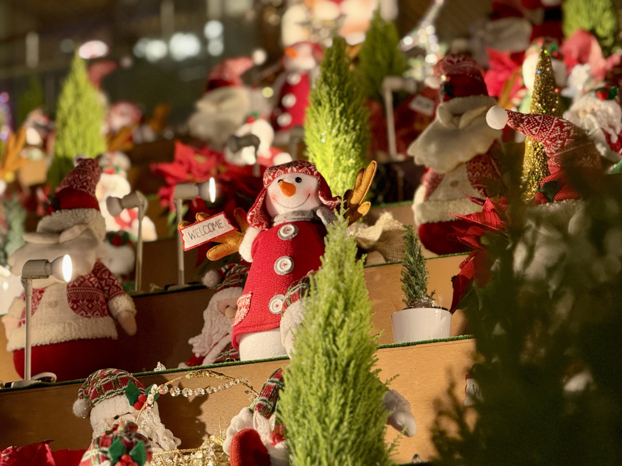 毎年恒例のクリスマス展♪サンタクロースやライトアップされたツリーが、クリスマスムードを盛り上げます!