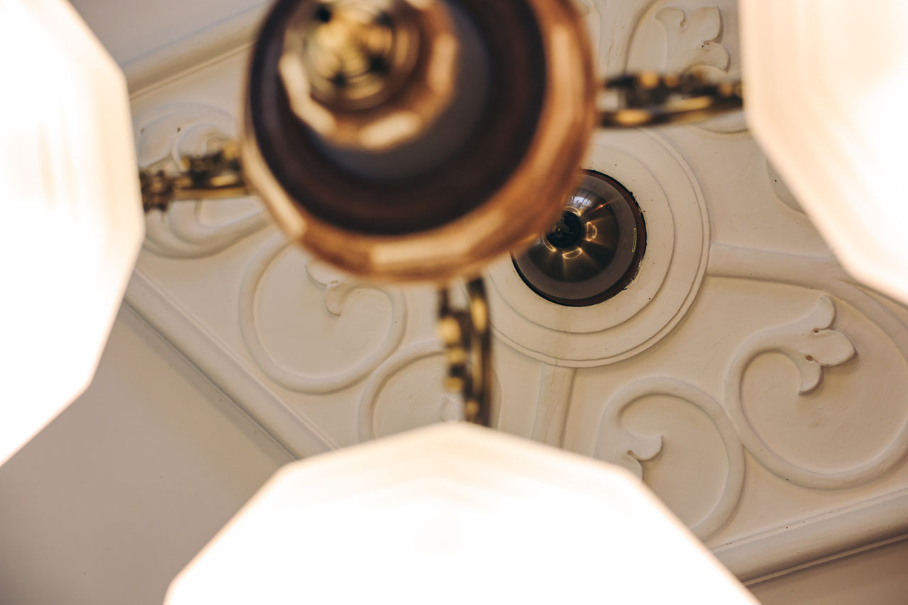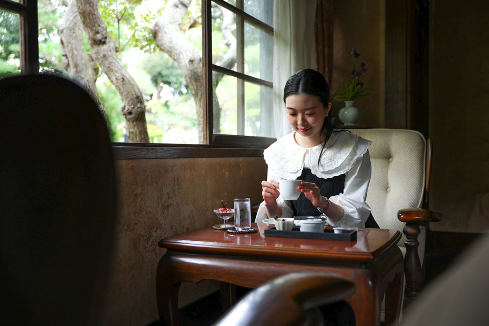 洋風の応接室では庭園の景色を眺めながら喫茶メニューを楽しめます。当時と変わらない装飾にも注目です。