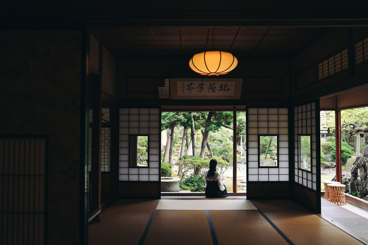 館内には和室と洋室があり、どの部屋からも庭を眺められる作りになっています。