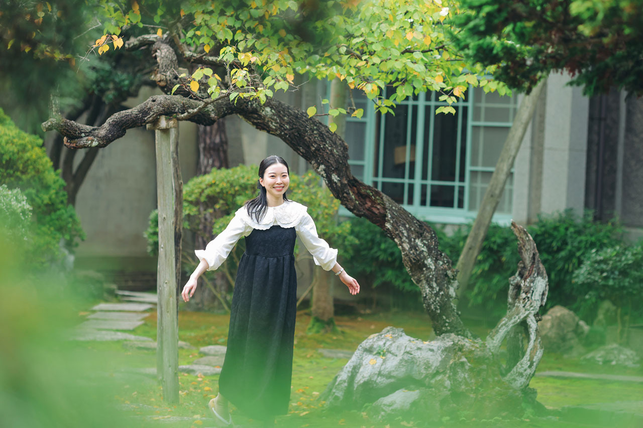明治期の書院造の日本家屋からは、枯山水を配した回遊式日本庭園を眺めることができます。庭園は自然の石を組み合わせて配置し水を使わずに自然風景を表現。天気がいい日は外に出ることもできますよ。