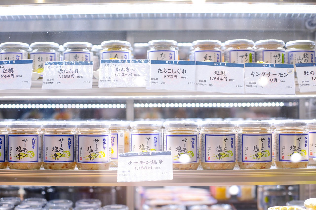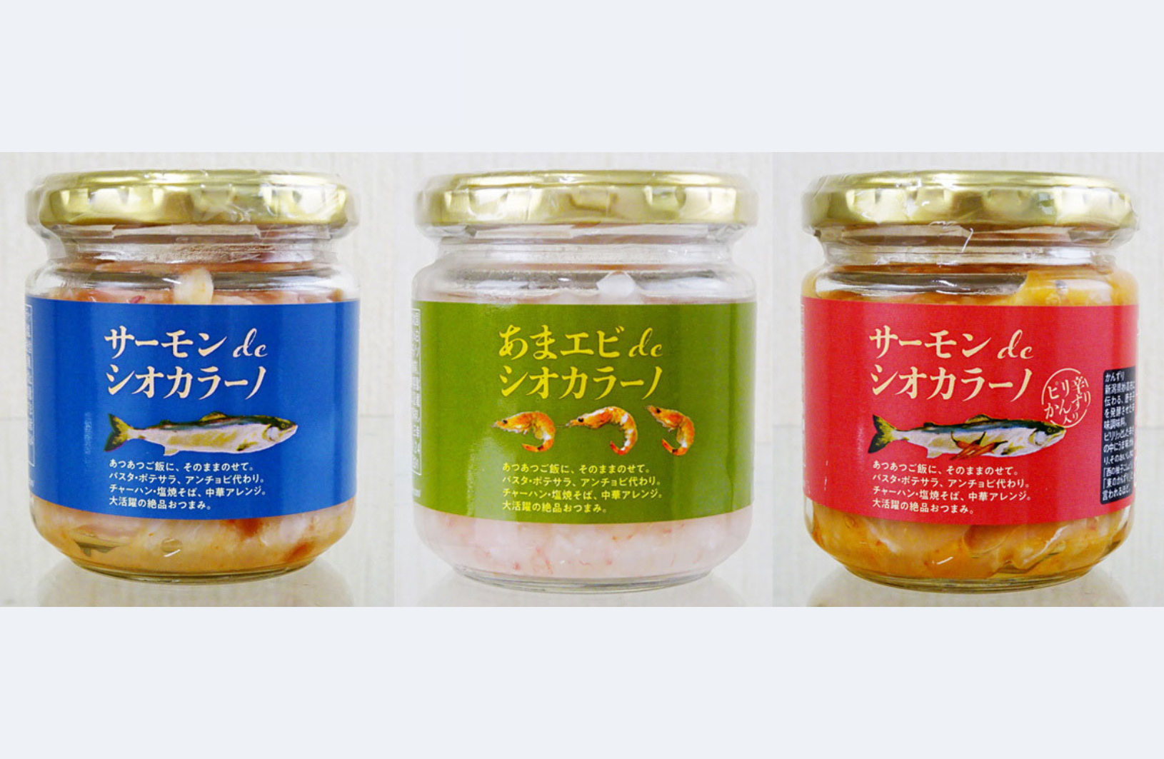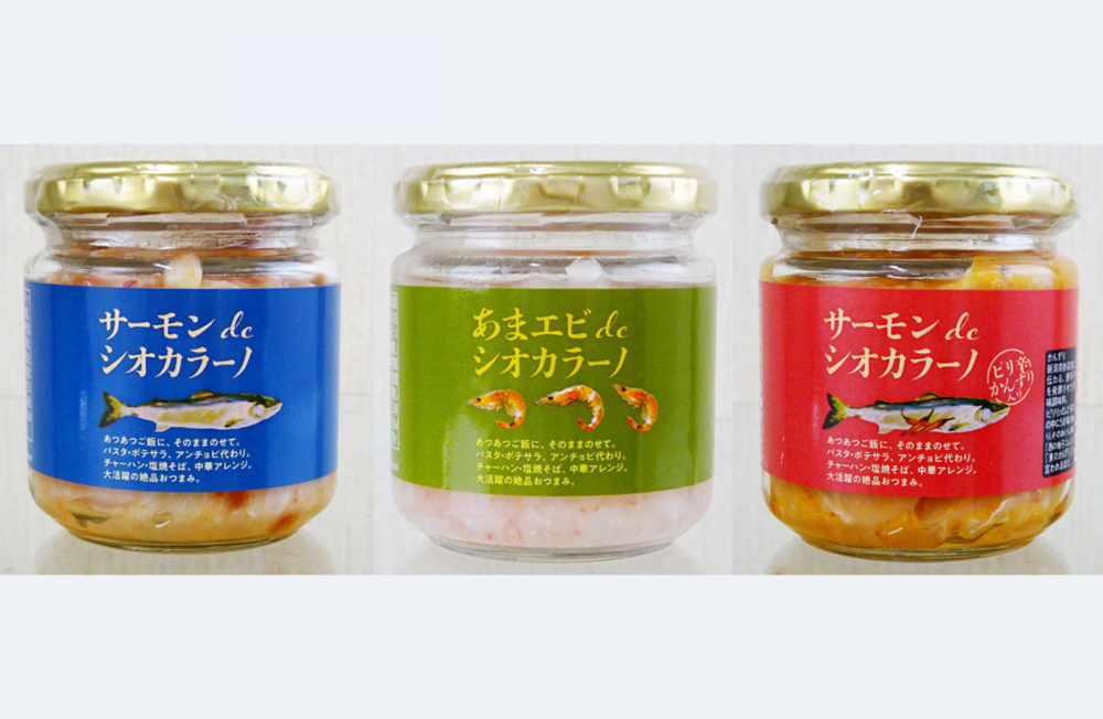 注目の新商品「シオカラーノ」は、人気珍味のお手軽サイズ版。ベストセラーの「サーモン塩辛」、妙高の伝統調味料「生かんずり」入りの塩辛、甘えびの塩辛と3種あり、とろける食感で、ご飯のお供にもお酒の肴にも最適です。