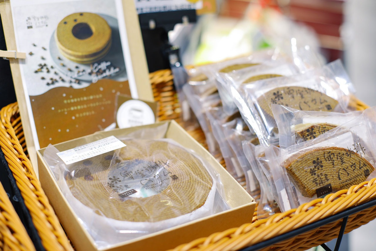 人気の「雪室珈琲バームクーヘン」は雪室熟成ならではのしっとりとした食感と奥深い味わいで、お土産に最適。雪室珈琲の豆を生地に練り込んでいて香りを楽しめます。