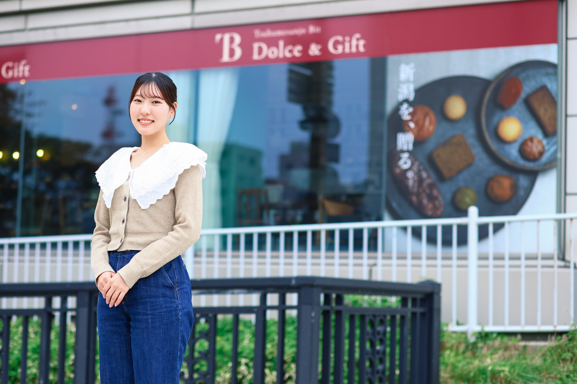 第16代にいがた観光親善大使の山崎さんと訪れたのは、新潟駅から約20分、重要文化財の萬代橋のたもとにある「Bit Dolce & Gift」。燕三条にあるレストラン「Tsubamesanjo Bit」が手掛けるカフェです。