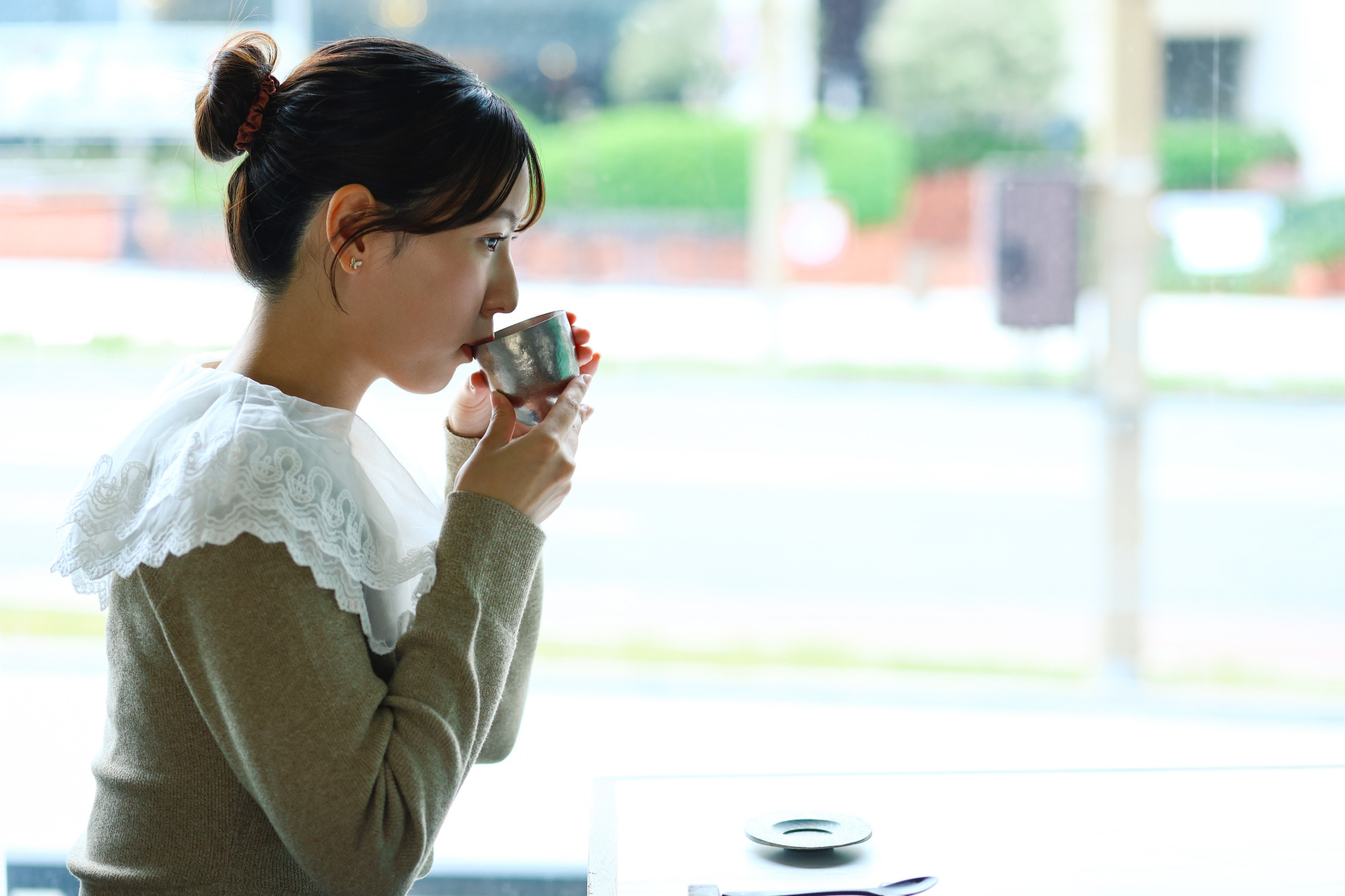 山崎さんはスイーツに合わせて新潟の雪室で熟成させた雪室珈琲を注文。カップはもちろん燕三条のSUSgalleryで作られたプロダクト。2重真空構造のチタン製カップは保温性抜群で、最後まで温かい珈琲を楽しめます。