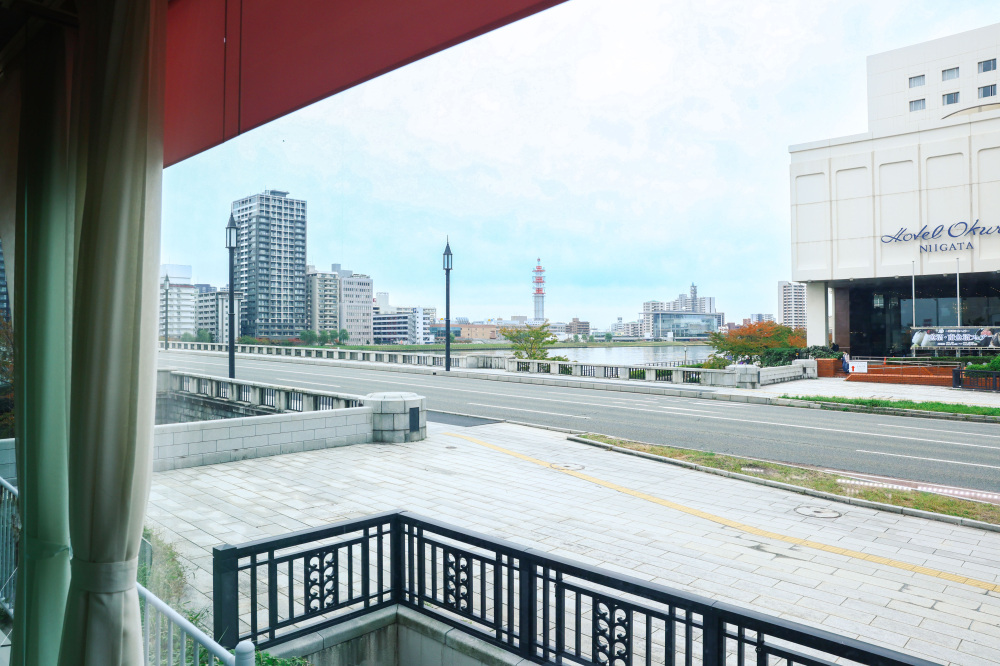 窓から見える景色も魅力の一つ。萬代橋と信濃川など新潟市を代表する景色を眺めることができます。食を通して新潟の魅力を体感できるカフェは、新潟観光の思い出作りに最適です。