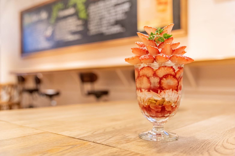 パフェには新潟の果物を贅沢に使用していて春は越後姫、夏は桃、秋はシャインマスカットを味わえます。