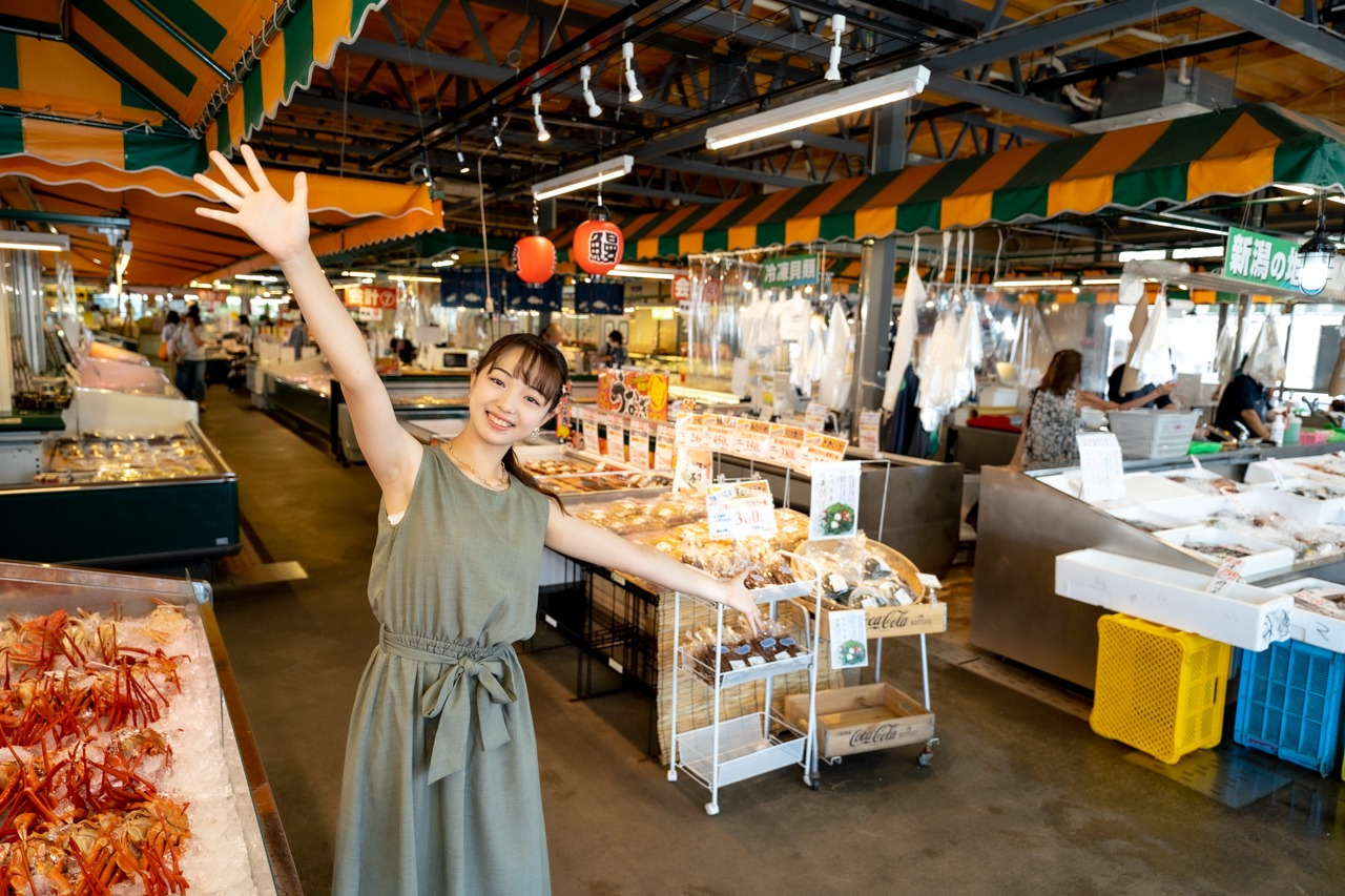 新潟の特産品が揃う「ピアBandai」。施設内には新潟の海産物や野菜、お肉、お酒からスイーツまで新潟が誇る美味しい食がぎゅっと詰まった旬鮮市場です。