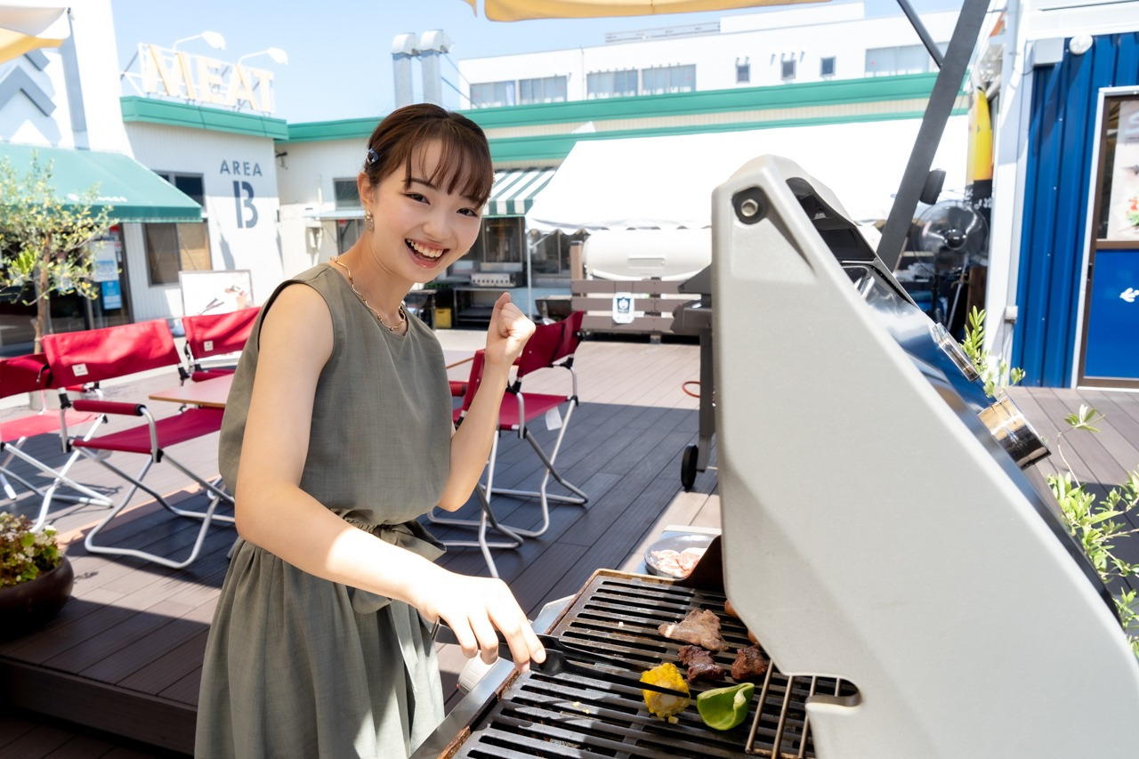 レッツBBQ!!アメリカ製のオシャレな高級グリラーを使って本格BBQを楽しめます。コースを注文すると、ピアBandai内の市場で購入したものを持ち込んで焼くこともできます。