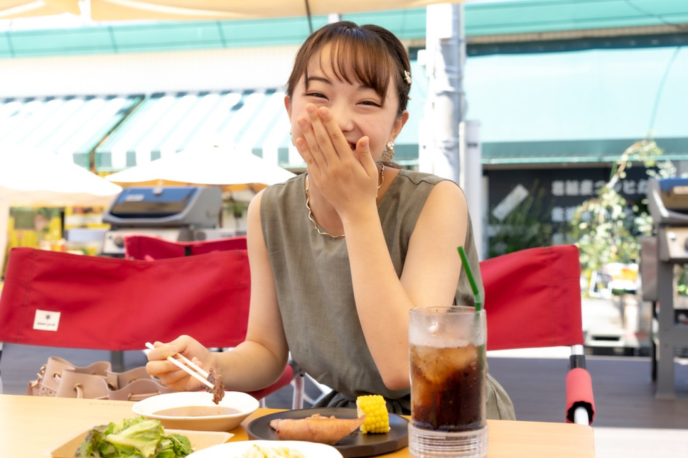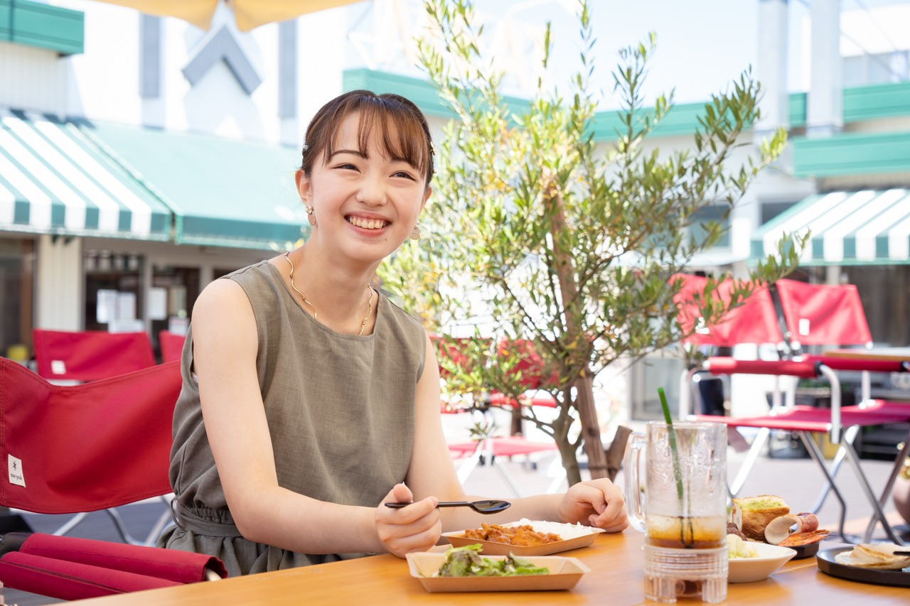 「お友達とも来たいなー」と中島さん。ピーカンテラスは、夜になるとライトアップされるので、昼間とは違う雰囲気で食事を楽しますよ。