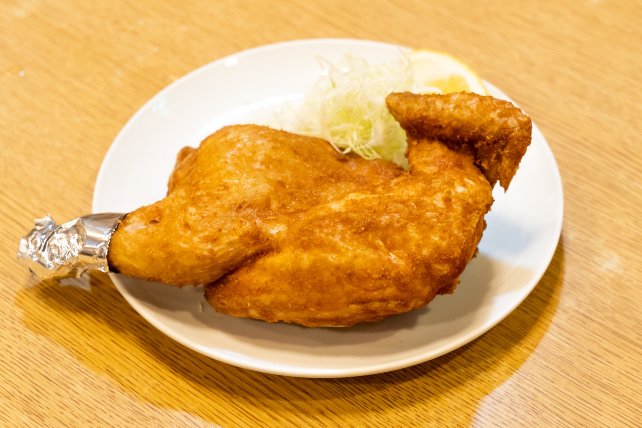 戦前から養鶏場を営んでいた初代が、子供達に人気のカレーライスからヒントを得てカレー味の半身揚げを誕生させたそう。安くてボリュームがある半身揚げは、今でも市民に愛されています。豪快にかぶりついてもいいですが、箸で真ん中あたりを押さえて、持ち上げる様に割くと綺麗に分けることができるのでお試しを。