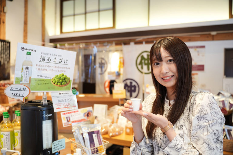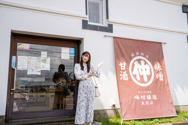続いて訪れたのは「峰村醸造直売店」。明治38年創業の老舗醸造所「峰村商店」が手がける直売店です。