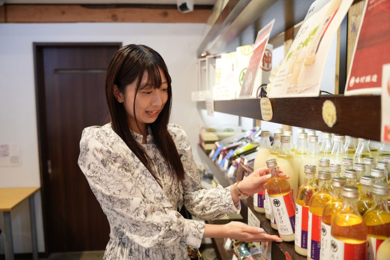 直売店では、ノンアルコールの甘酒や、酒粕を使ったスイーツなども販売。日本酒ファンはもちろん、お酒が苦手な方でも楽しめますよ!