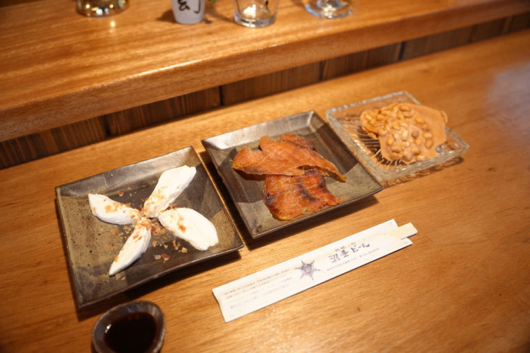 ビアパブでビールを飲むなら、おつまみと一緒に楽しみたいところ。沼垂ブルワリーは、県内産の発酵食品を使ったおつまみを豊富に取り揃えています。村上名物の鮭とば、江南区「LOYALHILL HOLSTEINS」のモッツァレラチーズなどをオーダー。どれもビールにぴったり!