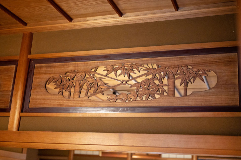 西の間の欄間には、景色に合わせて竹の模様が施されているのを発見。