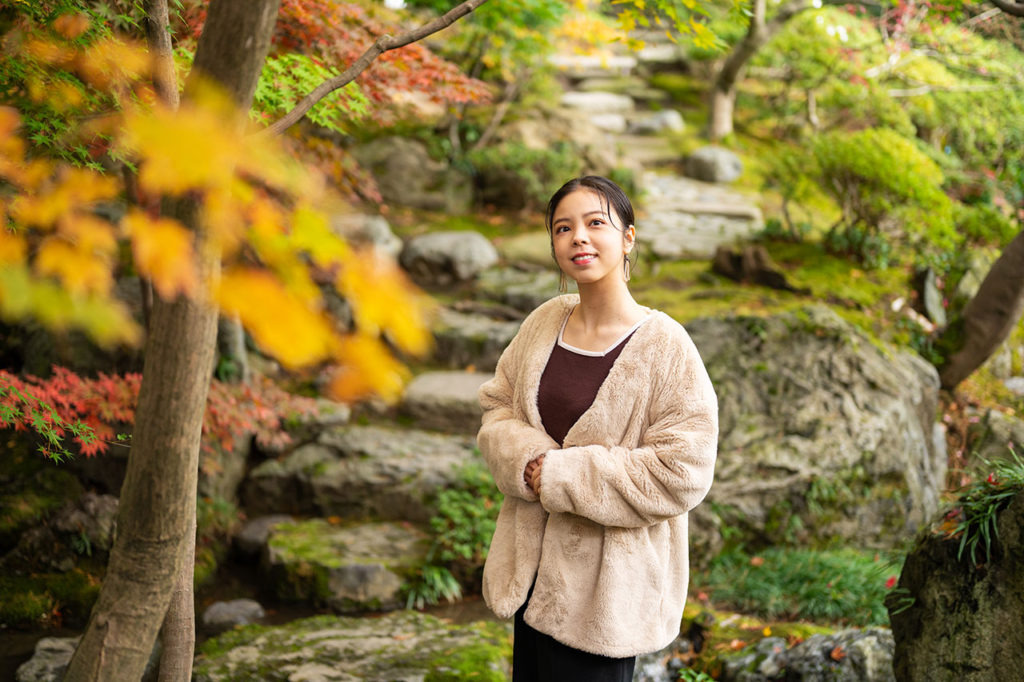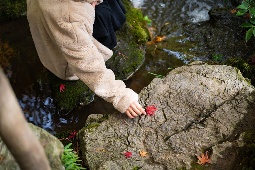 泉池の周りには滝や築山、茶室、茶庭が点在。自然に囲まれていると、市街地にいることを忘れてしまうはず。