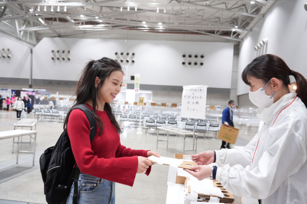 入り口でチケットを提示すると、試飲用カップを入れるボード、会場案内マップのほか、500mlのペットボトル水(和らぎ水)が1本もらえるのも嬉しいポイントです。