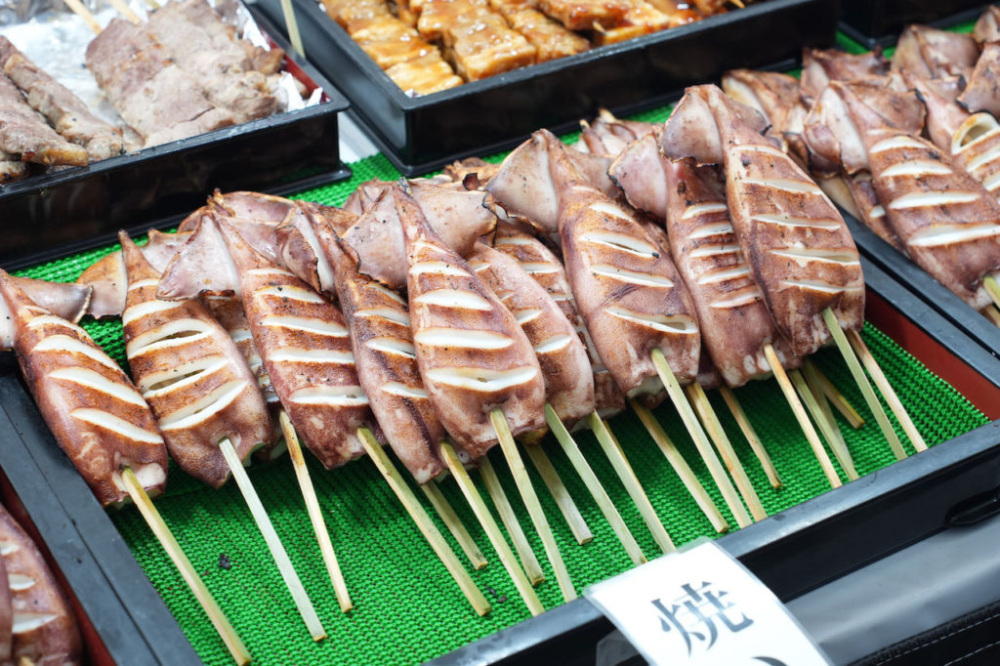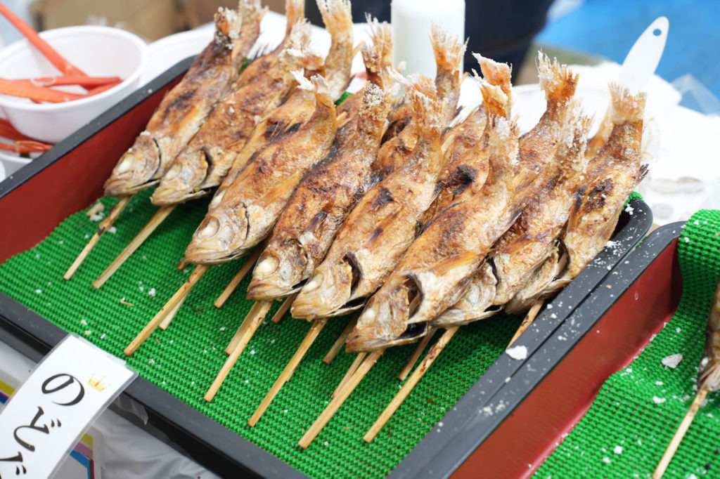 焼きいか、鮎の塩焼きなど、お酒とぴったりなグルメがたくさん。