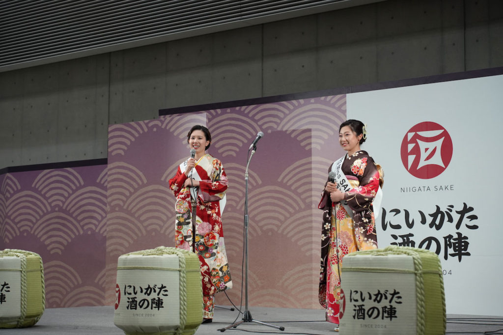 ステージでは、伝統芸能の上演のほか、新潟や日本酒に関係するさまざまなイベントが開催されます。この日はミスSAKE2023によるトークショーが開催され、会場を盛り上げていました。