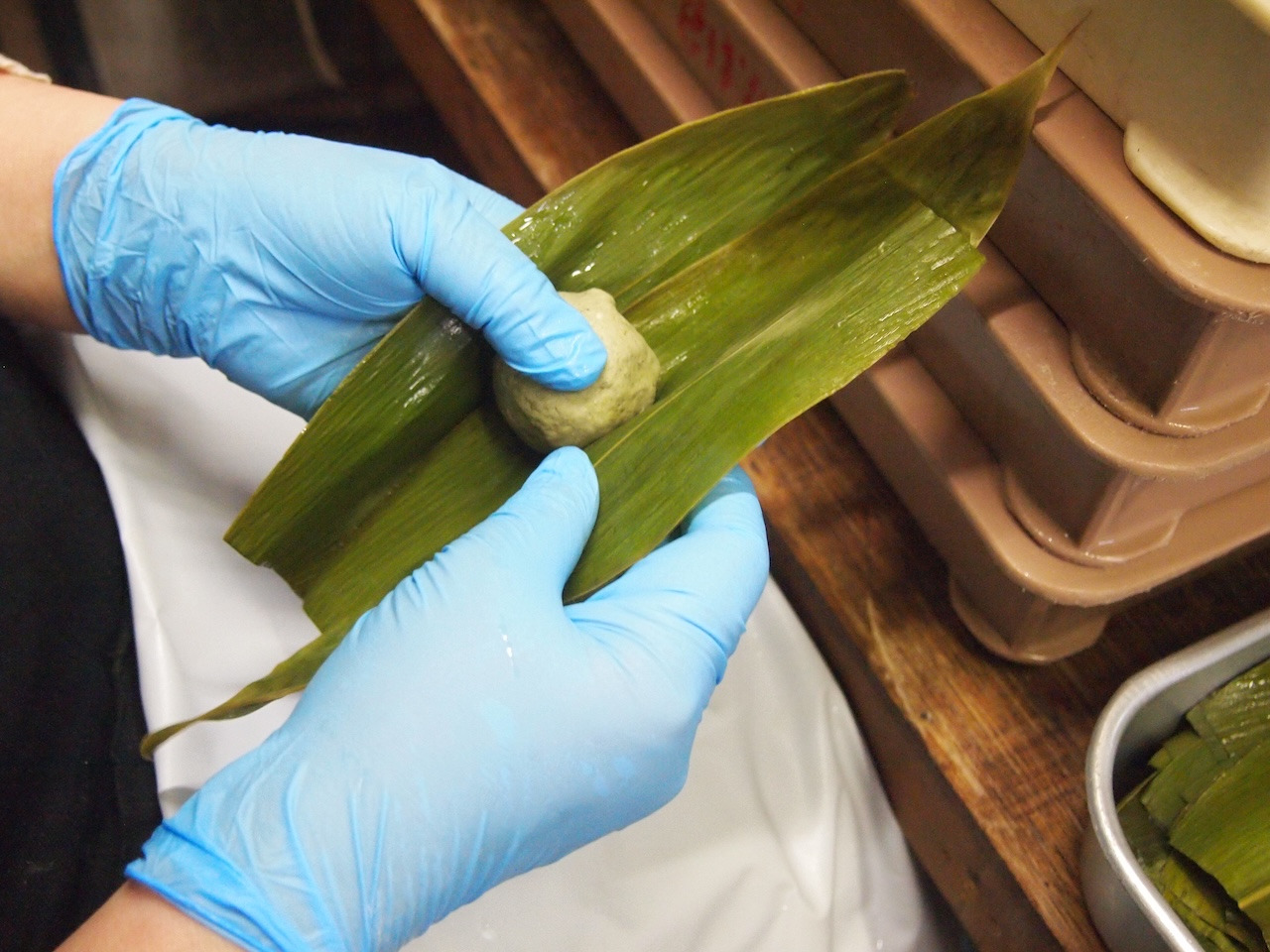 創業は明治16(1886)年。ずっと大切にしてきたモットーは「ほんものの味を」。創業以来、ずっと受け継がれてきた伝統の製法を守りつつも、甘さを調整するなど、時代に合わせた笹団子づくりで幅広い世代の心を掴んでいます。お店のカウンター越しには製造風景が少しだけ見え、ほんのりと笹とヨモギのいい香りが漂ってきます。