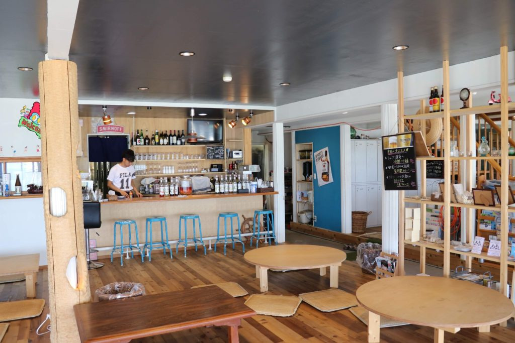 床にはフローリングが敷いてあり、まるでカフェのような室内。席数も多く、思い思いの時間を過ごせます。コワーキング スペースも隣接しているので、ワーケーションにもオススメです。無料でWiFiや電源を使うことも。