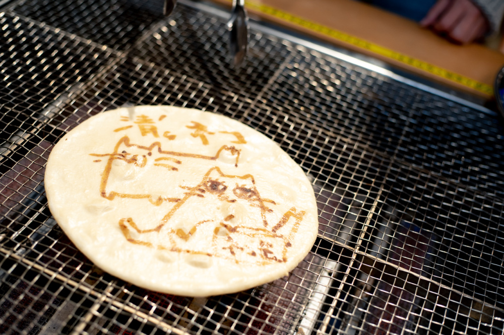 焼くことで醤油が焦げて絵がくっきり。仕上げに醤油で味付けして乾かし、冷ましたら出来上がりです!