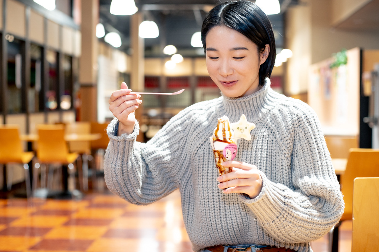 休憩スペースでは、おいしいスイーツや軽食を食べられます。