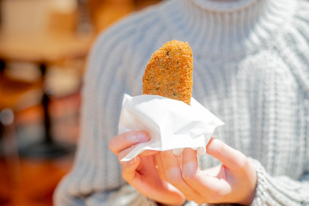 実際の「ばかうけ青のりしょうゆ味」に隠し味としてペパーソースが入っている様に、コロッケにも入っていて、味は少しスパイシー。この他にも期間限定のドリンクやフードメニューも登場するので、訪れるたび新しい発見がありそうです。