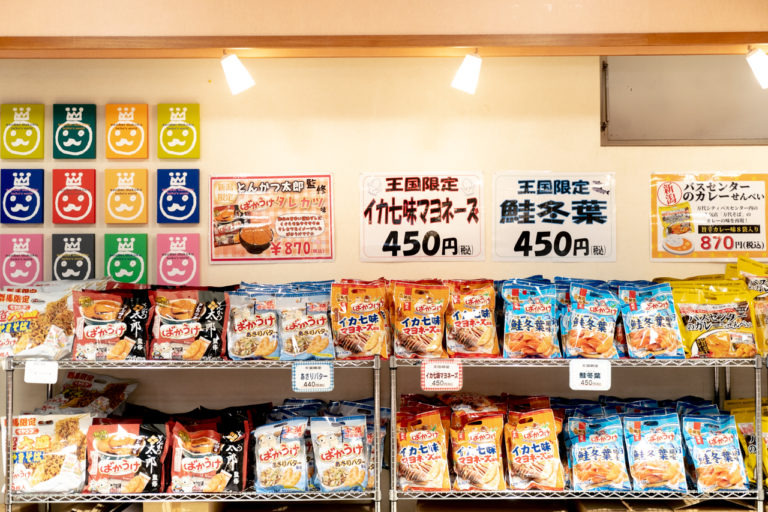 おみやげコーナーには、栗山米菓で作られている商品が勢ぞろい!ご当地限定のばかうけやせんべい王国限定の商品、直売所ならではのお得な米菓なども購入できます。
