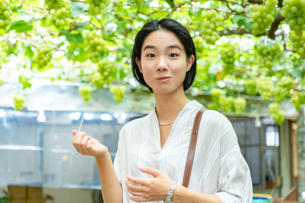 珍しい種類の「マニキュアフィンガー」。女性の指にマニキュアを塗ったような見た目のぶどうはさっぱりとしていて皮ごと食べられます。
