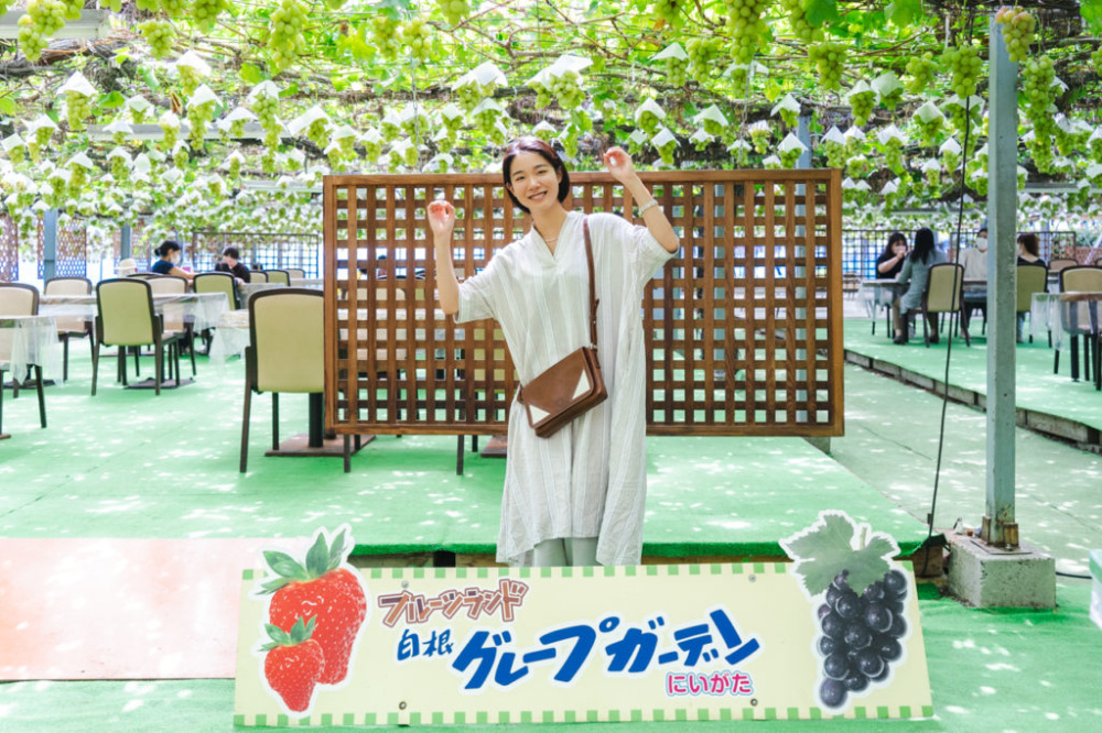 今回は、新潟駅から車で25分、新潟市のフルーツ天国南区にある「白根グレープガーデン」を、旅のしおりレポーターの清(さやか)ちゃんと紹介します。