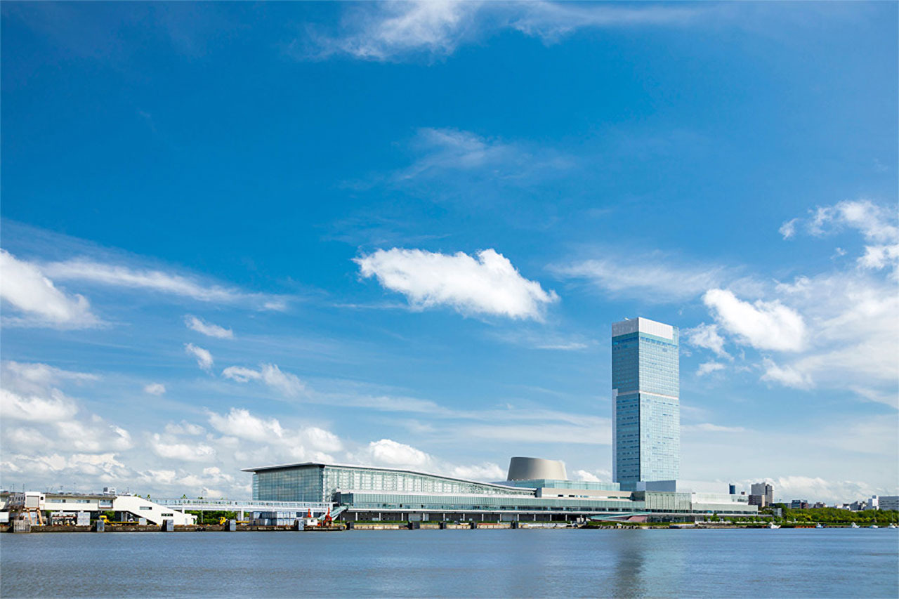 - 信濃川が日本海に注ぐウォーターフロントに位置する複合コンベンション施設、朱鷺メッセ。船をイメージした建物のシルエットは水面に美し…