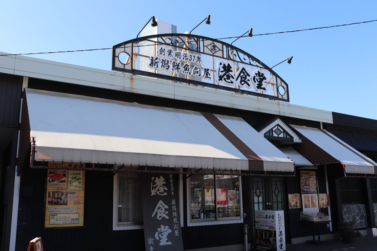 敷地内にある「港食堂」は明治37年創業の新潟中央水産市場株式会社直営。漁港、万代島の岸壁で水揚げされた魚を手料理で味わえるお店です。