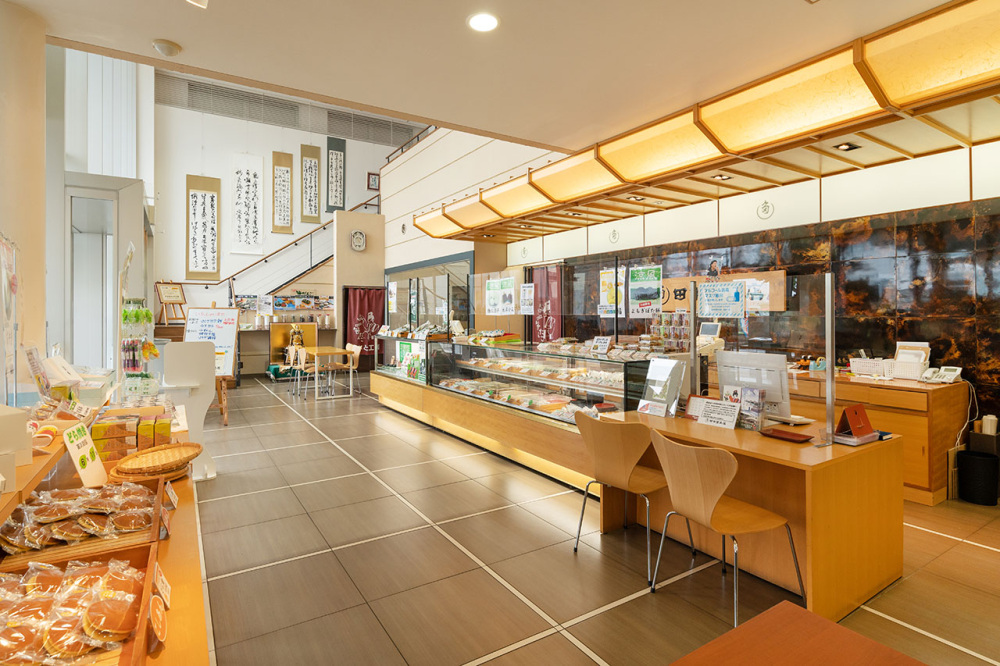 昭和6年創業の老舗だんご屋「田中屋本店」の体験型ショップ「田中屋本店みなと工房」。売店には新潟産の米を使った笹だんごをはじめ、もちやあんこを使った商品が多数。笹だんごはつぶあんやこしあん、手作りのきんぴらごぼう、佐渡産の海藻「あらめ」の佃煮、黒埼産の茶豆あんなど豊富な種類が揃っています。工場が併設しているので、ガラス越しに作っている様子も見学できます。