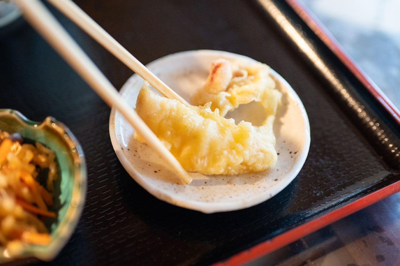 付け合わせには、するめいかの天ぷらなど新潟らしさを感じられる工夫も。