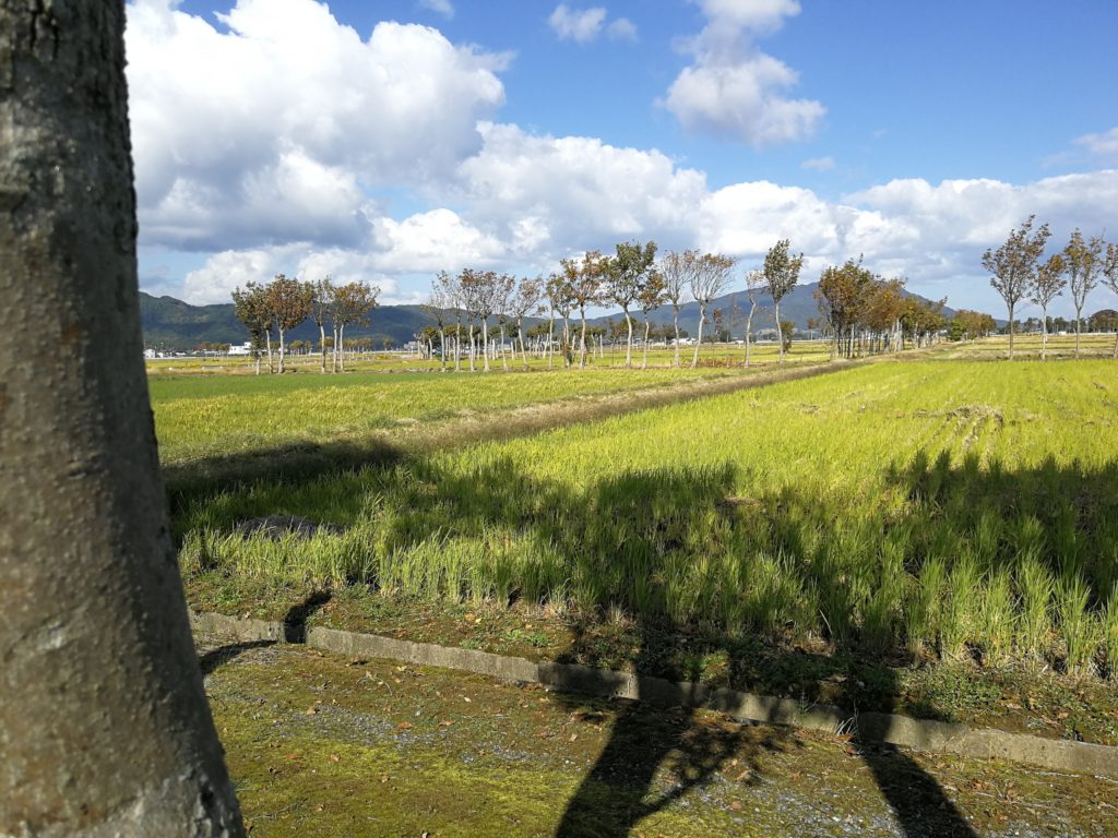 Over 600 ‘’hazaki‘’ trees lined up around vast rice paddies, and the mountain in the background: this simple yet beautiful scenery is emblematic of the Japanese countryside. These trees planted by farmers were used in the past to dry the rice after the harvest.