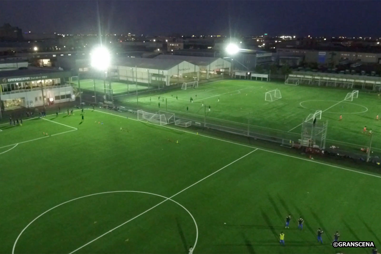 人工芝使用のサッカーコート2面、屋根付フットサルコート2面、屋外フットサルコート1面があり、全コートにナイター設備が完備されています。