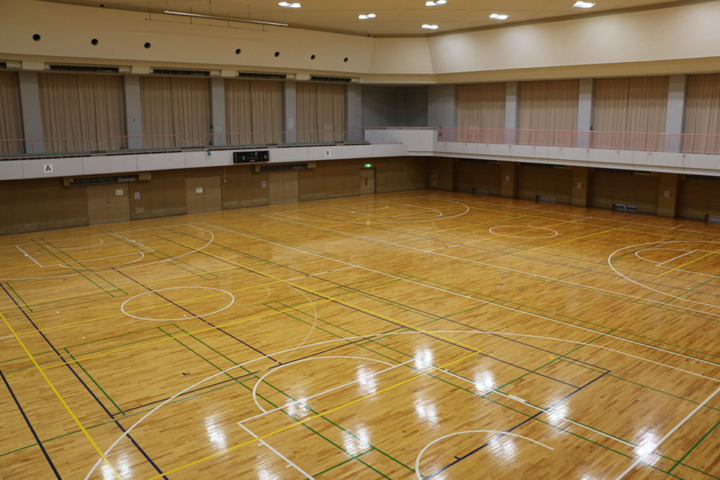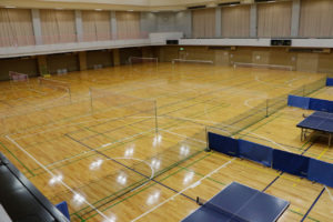 バスケットボール1面、バレーボール1面、バドミントン3面、卓球18台