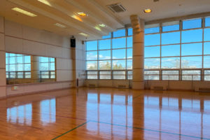 大体育室、トレーニングルームの他に開放感のある多目的ルームがあり、ピラティスやヨガ、ズンバ等の教室を多数開催しています。大体育室ではバスケットボールやバドミントンなど、多目的ルームでは卓球などの他にダンス等での利用も可能です。