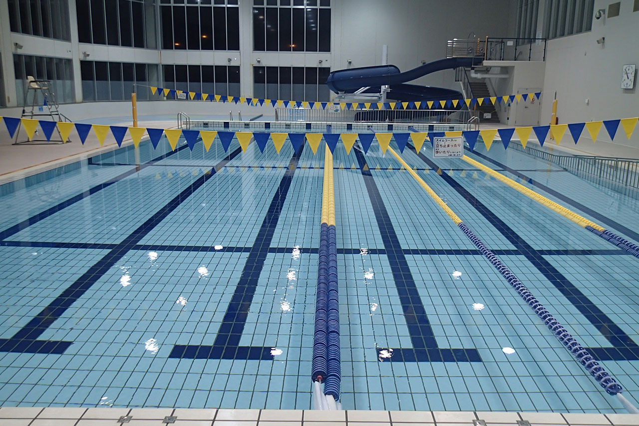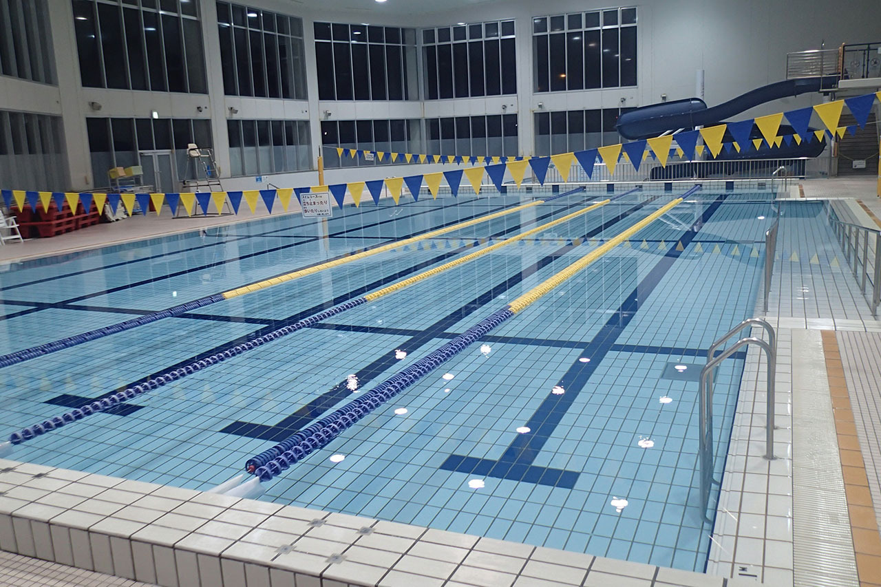 - ○屋内プール(25mプール×6コース 水深1.1-1.2m・幼児用プール 水深0.6-0.7m)