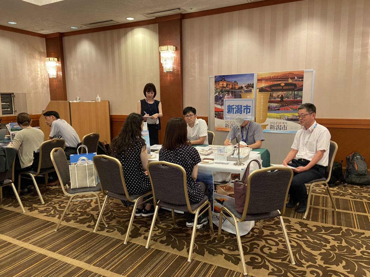 当日の商談会には、MICE主催者など18団体32名に対して、新潟市・新潟県の開催支援内容や、受入態勢のご説明、また開催予定の情報収集をしました。