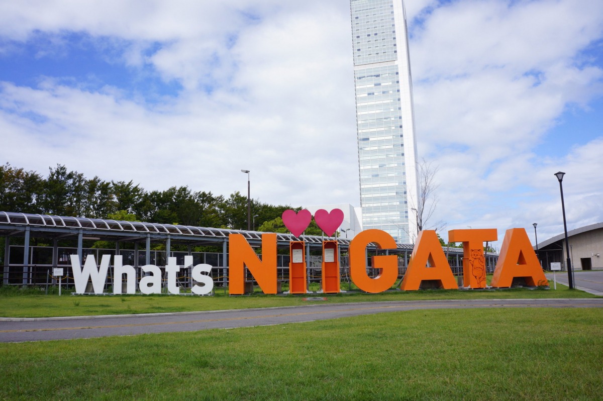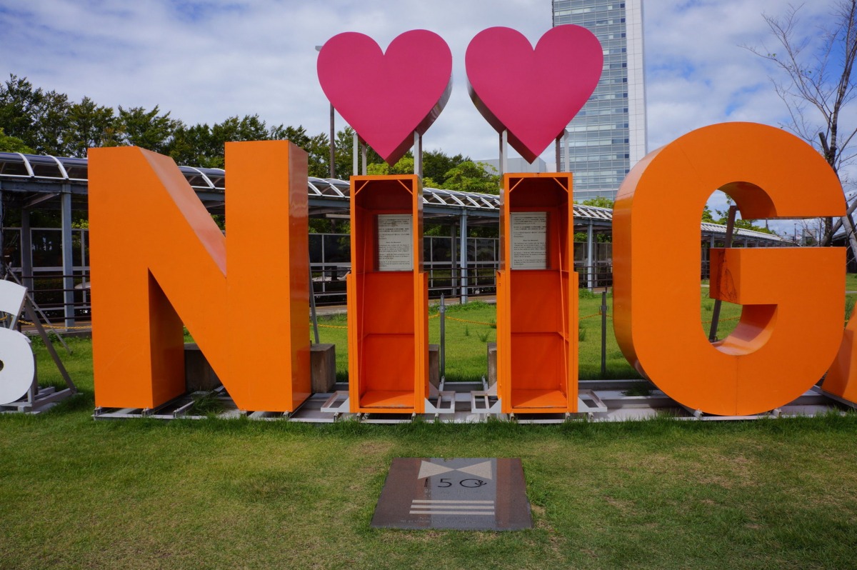 インスタ映えスポットとして人気の「What’s NiiGATA モニュメント」。